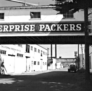 ![]() "South" end of the Row. California Frozen Fish Co. is now a park, as is Peninsula Packing [formerly E.B. Gross Packing] and the San Carlos Canning Company--now San Carlos Beach Park. |
