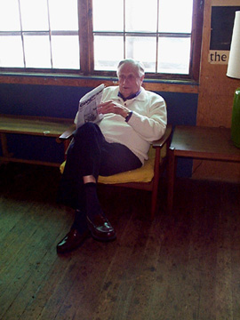 it. During the late fifties I was a Cold Warrior in Germany and fell in with a German photographer who became my mentor. Germany was still the out-front leader in technical photography in those days and when I got back to the states in 1961 I realized that I had quite a leg up when it came to small camera work. While at the Language School in 1958, I'd met Frank Wright and David Walton and after the Air Force I came back to help David open what was to become The Palace. I launched myself as a photographer a few years later, at first shooting overflow weddings for Steve Crouch and working out of home in Monte Vista with wife Myrna and family. In about 1963 I took one room upstairs in the Bear Flag Building for a lab. I was between a one-man fm radio station and Jay Chapin, the taylor. In about 1965 I opened gallery and lab space on the street across from Neil DeVaughn's restaurant and in 1967 or thereabouts I took 3000 sq feet, roughly one quarter of the building, on the second floor of the Monterey Canning Company as lab-gallery-living space. The rent was $75.00 a month. No water, electricity or heat. As the Row blossomed with refugees from Haight/Ashbury, that became the place that we all remember with such nostalgia. Soon after I left in 1970, the building itself sold for a million bucks and the flowering of the row was over. That few year's was also the period when I peaked as a photographer. One the one hand, automatic photography was coming on strong and, on the Row, it just wasn't as much fun after the wildly painted school busses pulled out, the hippy cafes closed and the last of the squatters were rousted from under The Wave Street Hilton. During, roughly, a decade of high activity as a photographer, my work was about evenly divided between small camera portraiture in the Monterey area and in journalistic-style illustrations for corporate publications and advertising. The best of the portrait work was done for love - though lots of it was commissioned - but the corporate work kept the pot boiling and some of that was pretty good, too. I guess that I managed to get a pretty fair sample of the artists and writers of that time and place but there were many whom I missed. Seeing ones work on Barbie doll boxes counts in a different way. When it was all over, no one was more surprised than I to find that my whole passion for photography had just faded away as well. I bounced around for a year or two and then, on the very last gasp of my G.I. Bill, went to graduate school in Portland and into psychology as therapist, later as evaluator in the criminal courts, and still later as a builder of cruising houseboats. For nearly all of the next twenty years I lived on boats in Olympia. Wendy and I made our first trip to Alaska in 1995 and were smitten from the first. We swapped the first old wooden sailboat for a larger old wooden sailboat and came back in 1997 to be caretakers of a remote fishing lodge. In 2000 we swapped the big old wooden sailboat for an even bigger old wooden power boat and came up to Tenakee Springs. Tenakee is a very old coastal community of less than 100 people: no road, no cars, no cell phone - though we did get slow inter-net a few years ago. I build and mess about with small boats and I write articles about life in the bush for the Capitol City Weekly in Juneau. So, there. b |