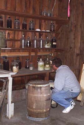 inspects lab supplies in basement of Ed's Lab on a trip up from Southern