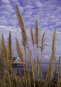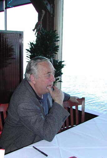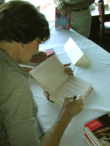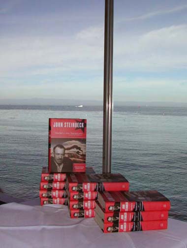 Monterey Canning Company, home of The Fish Hopper Restaurant, Cannery Row location of the national book party release of "America And Americans."10/28/04Book table and book stack at the Fish Hopper, overlooking Monterey Bay