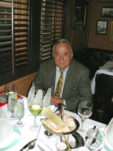 Getting their dinner started at the Sardine Factory. Jack and Susan with ice swans.