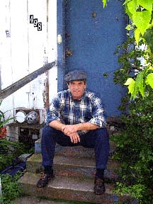 Scrap Lundy, renowned abalone historian, researcher and board member of the Cannery Row Foundation, sits where "Gabe" (Steinbeck's model for Mack in "Cannery Row") had his picture taken in 1945 by photogprapher Peter Stackpole which appears on the Penguin paperback edition of "Cannery Row." |