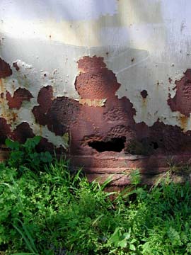 ![]() Rust hole in San Xavier main sardine oil storage tank. |