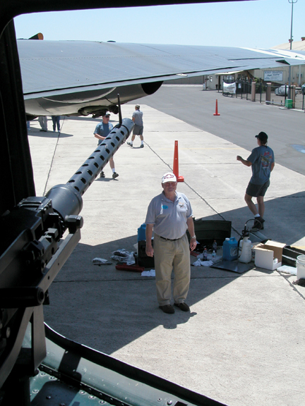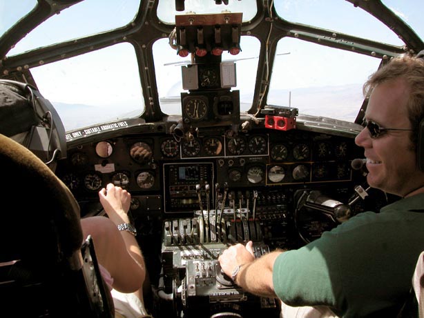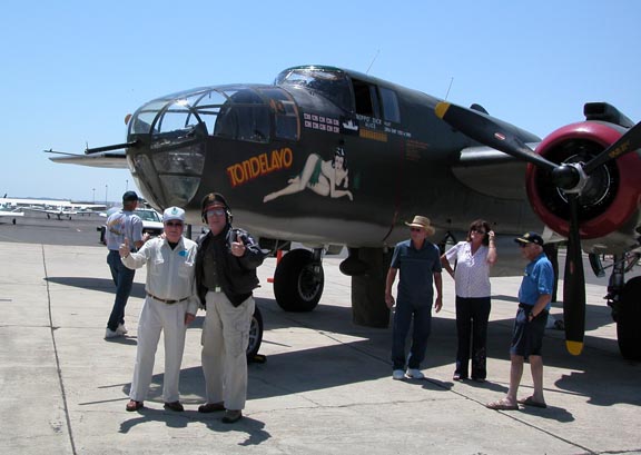 P-38 pilot Clarence Bush with Capt. Mike at B-25 "Tondelayo"